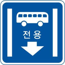 버스전용차로는 청색으로 도색되어 있어 쉽게 구분할 수 있습니다. 버스의 진출입을 위해 진출입부는 점선으로 표시됩니다.