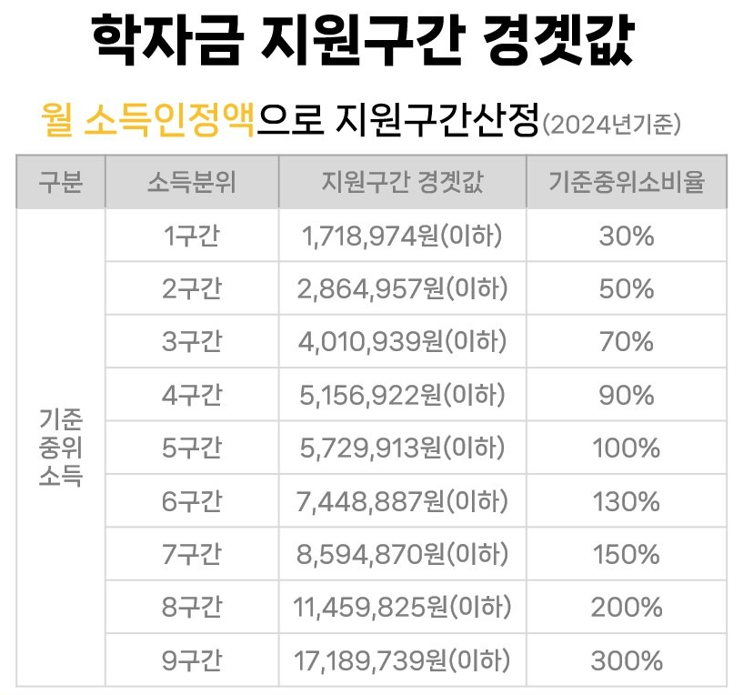 - 소득분위 8구간 이내의 대한민국 국적 학생이라면 신청 가능합니다. 단, 성적 기준 등 추가 조건이 있을 수 있습니다.