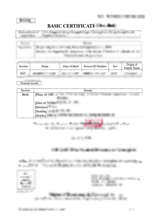 - 기본증명서: 개인의 출생, 사망, 국적 변경, 이름 변경, 친권 등에 대한 정보를 포함