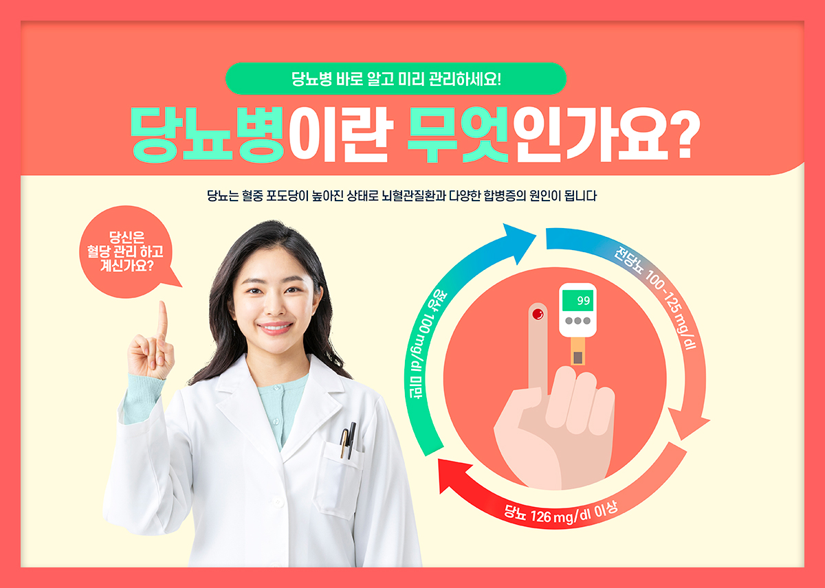 당뇨병 예방과 관리를 위해 정기적인 건강 검진이 필요합니다. 혈당 수치, 혈압, 콜레스테롤 수치 등을 주기적으로 체크하세요.