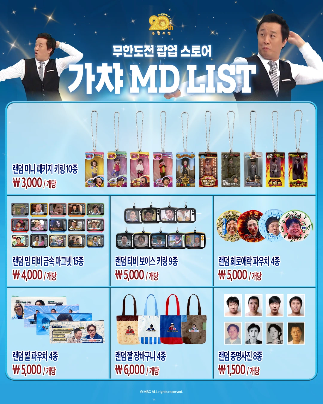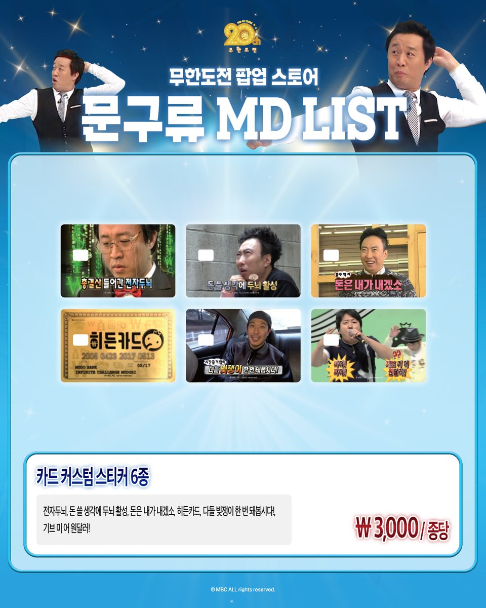 | 티셔츠 | 멤버 시그니처 디자인, 20주년 로고 |