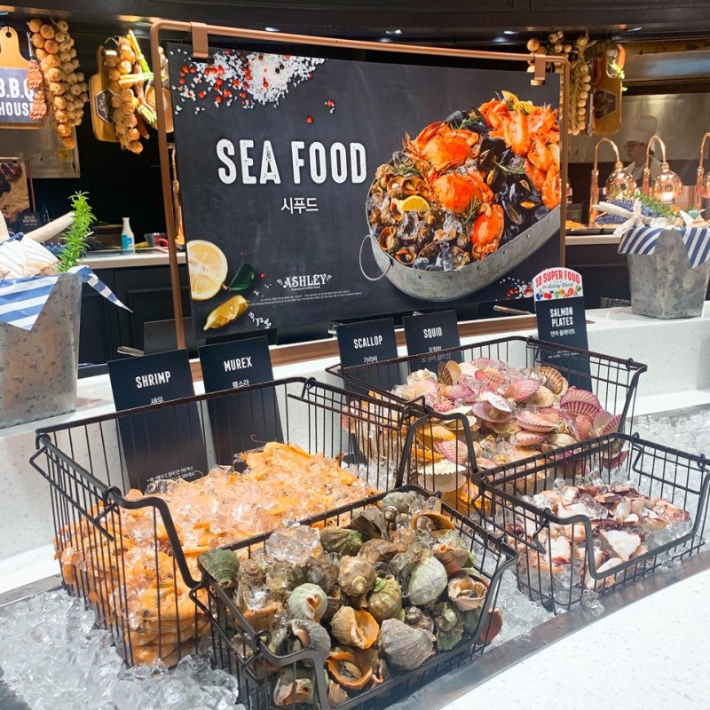 애슐리퀸즈의 가장 큰 매력은 다양한 메뉴 구성입니다. 여러 코너로 나뉘어 있어 다양한 음식을 한 자리에서 즐길 수 있습니다.