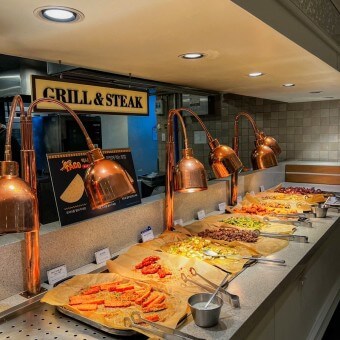 - 인기 메뉴: 스테이크, 초밥, 파스타, 디저트 코너