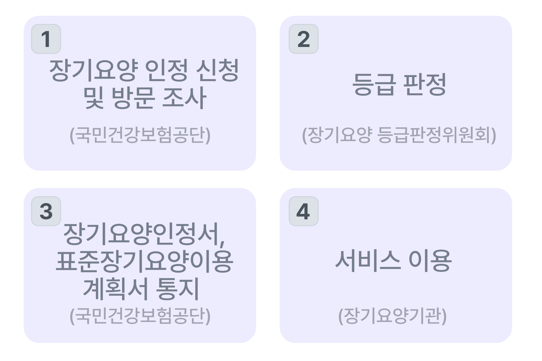 장기요양등급 4등급 혜택을 받기 위해서는 먼저 신청을 해야 합니다. 신청 과정은 다음과 같습니다: