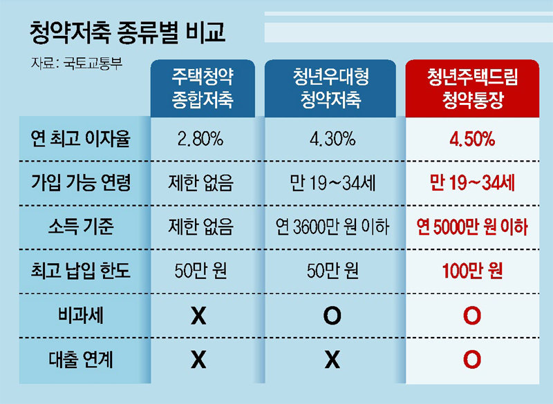 청년주택드림청약통장과 일반 청약통장 금리 비교