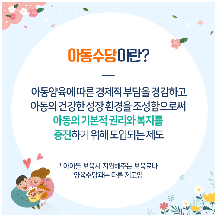 아동수당법에 따라 법적으로 보장된 이 제도는 소득이나 재산에 관계없이 보편적으로 지급되는 복지 혜택으로, 아이를 키우는 모든 가정에 큰 도움이 되고 있습니다. 특히 양육비가 계속 증가하는 요즘, 아동수당은 가정 경제에 든든한 버팀목이 되고 있습니다.