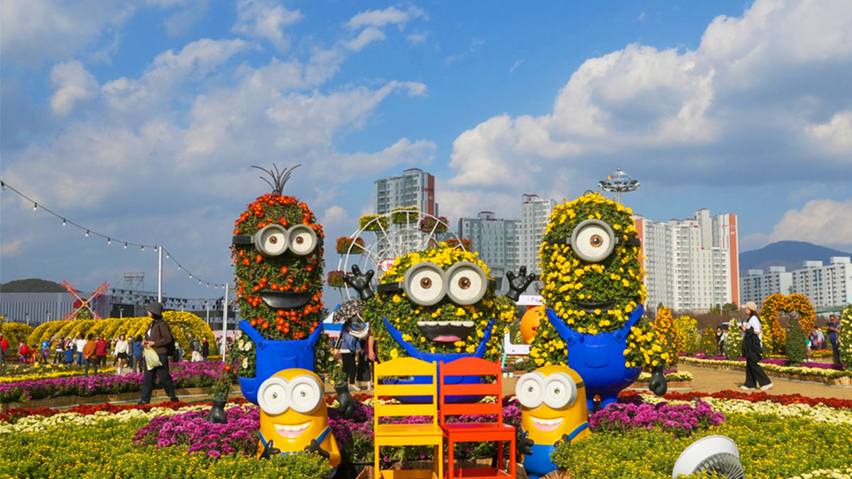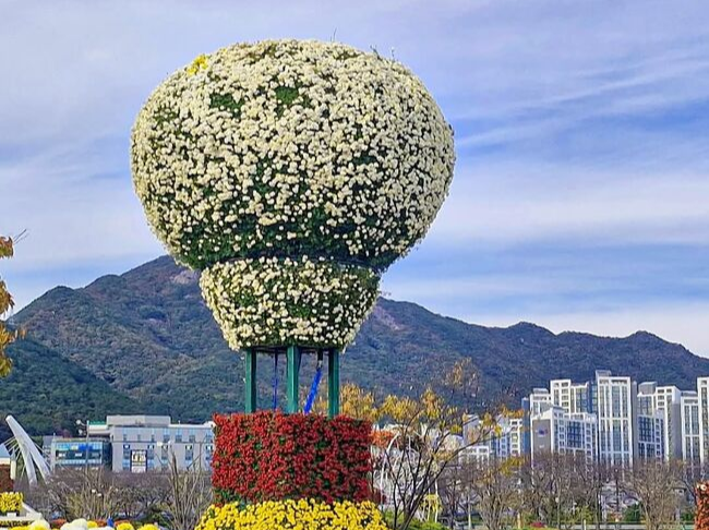 국화꽃으로 수놓은 화려한 포토존