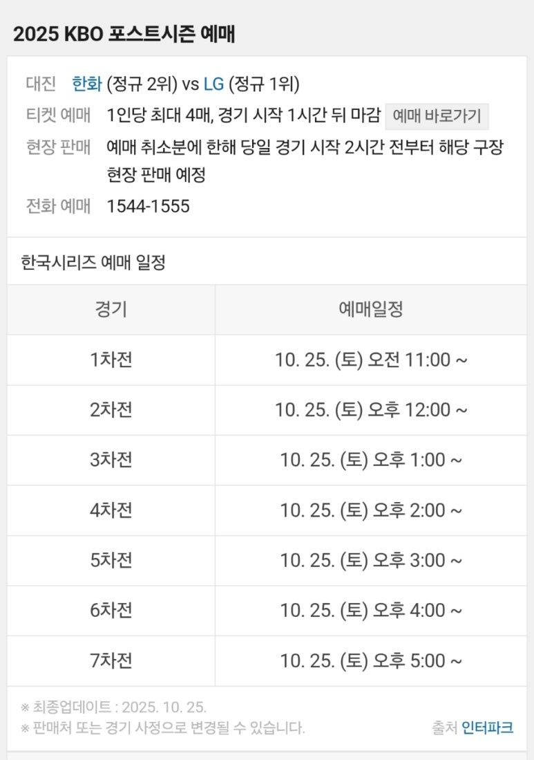 2025 한국시리즈 티켓예매 방법 총정리