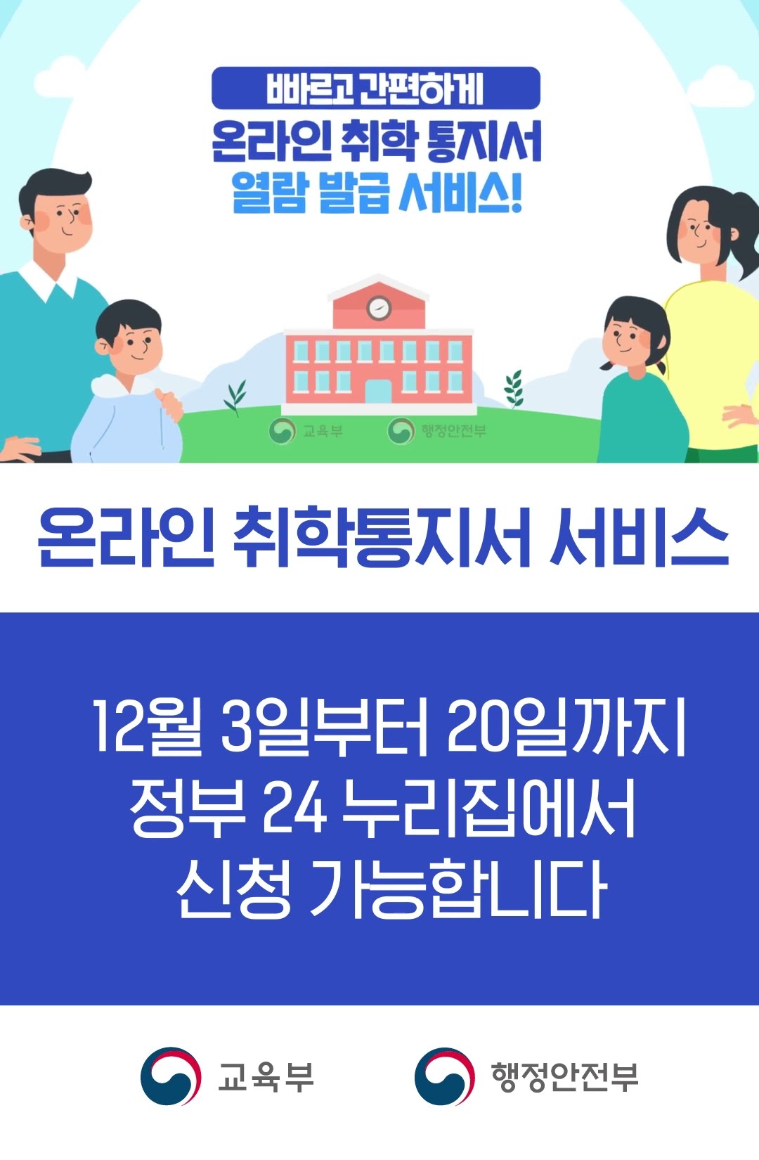 2025년 12월 3일부터 정부24 홈페이지에서 초등학교 취학통지서를 온라인으로 발급받을 수 있습니다. 우편으로 도착하기 전에 미리 확인하고 싶으신 분들은 이 날짜를 꼭 기억하세요.